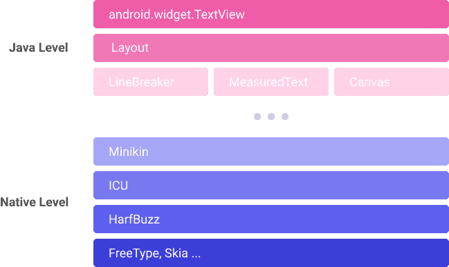 대부분의 GUI 를 지원하는 framework 들은 위 고민을 해결하여 추상화 시킨 API 를 사용자들에게 제공합니다. 이번 글에서는 Android 의 text layouting 을 AOSP 에서 어떻게 구현 하였는지 알아보려고 합니다.